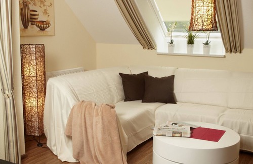 High quality apartment for 2-4 people, approx. 100 m². Spacious, very well equipped apartment on the upper floor. Non-smoker, allergy-friendly, in a quiet suburban location (dead end) with a view of the countryside,