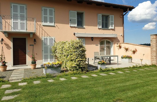 Perfect for a couple or small family, this one bedroom, one bathroom apartment with living room and full kitchen has a private terrace with waterproof electric sunshade for al fresco dining, and leads directly onto the garden and pool area. Beautiful vinyard views in a peaceful location, but with easy access to shops and the lovely villages and towns of this wonderful area of Piemonte. Pool 12m x 6m with isothermic cover for heat retention. Free good wifi both in the apartment and garden/pool area. Access to pretty shaded pergola seating area with lights and electric point.