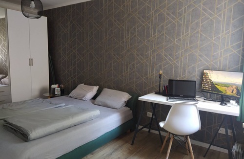 Spacious apartment available in Budapest. Nice kitchen, dining area, comfy couch, TV and separate work stations are some of the main features of this bright apartment. It is located in a nice residential area with restaurants and parks, but still walking distance to the bustling party district of the downtown.