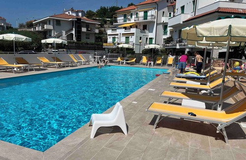 Outdoor supervised swimming pool with sun terraces, completely new, will be inaugurated in early June 2025 and will remain open until the end of September.Private parking inside the property. In a quiet and sunny position surrounded by greenery, a few steps from the center and the sea, the residence also has a children's playroom, washing machine for common use with coin acceptor, outdoor porch with vending machines for hot drinks and snacks. Free wifi connection throughout the hotel. Pets allowed with supplement. Linen only on request for a fee, baby bed and high chair on request free of charge. Agreement with bathing establishment.