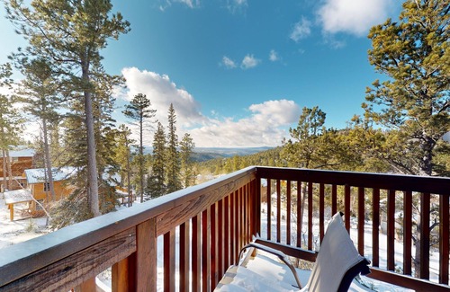 A relaxing holiday in the Black Hills awaits at this peaceful pinetop cabin. The spacious interior has plenty of room for the whole family to spread out and private outdoor features include amazing mountain views, furnished decks, and a covered hot tub. Step outside onto one of the four decks and take in the stunning views and fresh mountain air. Situated just minutes from the Terry Peak Ski Area and only seven miles from Mystic Miner Mountain Resort, this is the ideal base camp for winter recreation. Year-round activities include hiking, fishing, and ATV/off-roading. The nearby towns of Lead and Deadwood offer plenty of local charm and history to discover, along with shops, breweries, and dining options. Mount Rushmore National Memorial is only 54 miles away.