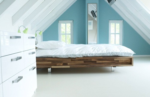 Upstairs there are another 4 bedrooms, two with a double bed and two with two single beds each. The single beds can be pushed together if desired and can be turned into double beds with an extra top mattress. In that case, the house has five rooms with double beds. You can easily place a cot here and there. All bedrooms are light and fresh and have beautiful panoramic views over the meadows with sheep and in the spring the lambs.