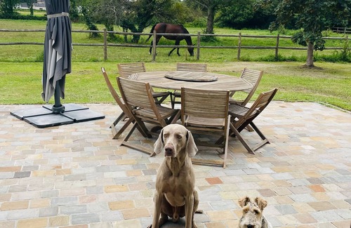 Private terrace. Garden furniture. Owners' dogs on site and likely to come onto the terrace of the gîte.