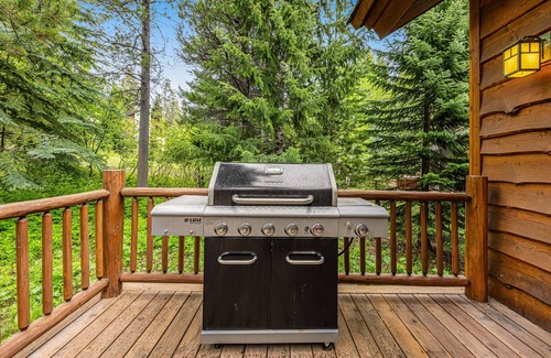 This rustic yet elegant home is perfect for families or a group of friends looking to relax and enjoy everything the mountain has to offer. Inside, the large open floor plan combines the kitchen, living room, and dining area. Stock up on groceries and surprise your friends with delicious, homemade meals prepared in the well-equipped kitchen, which features modern appliances and utensils. After mealtime, kick back and snuggle up on the sofas to watch TV, or listen to your favorite tunes on the Bose speaker system or Bluetooth. Grab a book and get lost in it while the wood-burning fireplace warms the room. Outside, the large deck is perfect for summer gatherings, boasting an outdoor dining area, a gas grill, comfortable chairs, and a private hot tub.