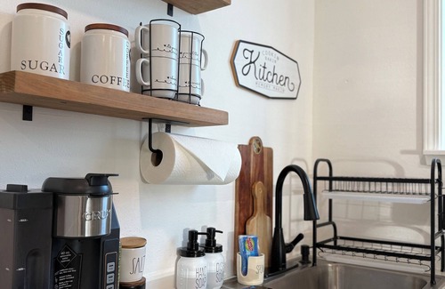 Your suite is a spacious 1 bedroom/1 bath with kitchen area. Air-Fryer and Microwave are available to use. The space has common laundry room with the host residence. Access through your own private entrance and make yourself at home in our freshly furnished unit. Amenities include Wifi, clean linens and towels, microwave, mini-fridge, air-fryer, electric kettle, complimentary coffee and tea, and self check-in. Please feel free to take-out and dine in using the provided dishes and silverware. Please clean up the dishes and put your garbage in the front door before you check out.