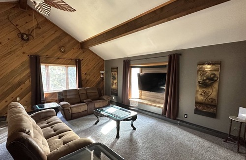 Spacious home on private drive close to town. Two areas for dining, large living room. TVs in every room. Cozy home away from home. View the northern lights from the upstairs balcony in the winter or enjoy an outdoor picnic in the huge front yard in the summertime.