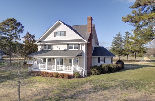 Luxury large home on the water that sleeps 17 with five private bedrooms and a sixth private sleeping area with a pullout couch and six private full bathrooms. Enjoy rocking on the large back porch overlooking the water. Fish, catch blue crabs or enjoy the large amazing dock to watch the sunset. More than an acre of waterfront land with a fire pit, launch kayaks (4) or SUP (2) and make your way to white sand beaches. Many private spaces to spread out for large family reunions, wedding parties and/or corporate events. Screened porch, deck with gas and charcoal grills, front and back porches, fireplace, large dining table for making memories together. Kitchen is well stocked, two coffee makers and almost all basics provided. The area provides antiques, beaches, restaurants, hiking and more. The perfect place to get-away, relax and restore.
