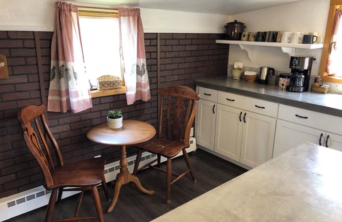 A classic, comfortable hideaway with large common areas to relax and enjoy, just off the main drag in Calumet. Historic flavor with tasteful decor, uniquely nostalgic character with modern touches. High-quality bedding and linens, fast WiFi, and a great big kitchen that everyone seems to love. On the second floor there are 3 bedrooms with queen beds, and behind the barn door is a cozy space with a twin bed we call the "Bunny Hutch." There's also a big kitchen with concrete countertops, breakfast nook, dining area, living room, and bath. On the first floor there are two bedrooms, full bath, living room, and mud room with ample storage space for boots and motorsports gear.
