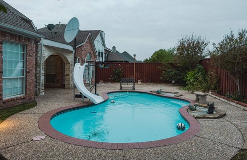 This memorable house is the perfect home base for your trip to Grand Prairie. With 6 bedrooms, including 1 king bed, 3 bunk beds, and 2 queen beds, there's plenty of space for all your guests. The 3.5 bathrooms are equipped with amenities like a jetted bathtub, shower, and hair dryer. You'll also find heating, AC, a washer, dryer, WiFi, and an iron for your convenience. Garage is closed off to guest. Experience what Grand Prairie has to offer with a stay at our awesome house.