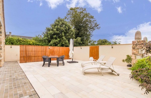 Detached house. Living room. Lounge (TV with access to French and foreign channels, Internet, Bluetooth speaker). Fitted and equipped kitchen (induction hob with extractor hood, electric oven, espresso machine, microwave, dishwasher, American-style refrigerator, wine cellar). Laundry room (washing machine, dryer). WC. Upstairs: Bedroom 1 (160x200 bed, TV) and private bathroom (sink, Italian shower, WC). Bedroom 2 (2 80x200 beds, TV) and private bathroom (sink, Italian shower, WC). Bedroom 3 (1 160x200 bed, TV) and bathroom (sink, Italian shower and freestanding bathtub). Indoor heated pool in the chapel with pool shower. Courtyard secured by a gate with possibility of parking several vehicles. Enclosed garden. Terrace. Garden furniture. Deckchairs. Covered shelter. Barbecue. Ping-pong table. Electric heating (aerothermal). All charges included. Bed, bathroom, and pool linens provided. Beds made upon arrival. Housekeeping included. This high-end house was completely renovated in 2020. A cozy and elegant interior of 270 m² offers a spacious and welcoming living space for your stay. Fully equipped and furnished, this residence can accommodate up to 6 people in optimal comfort. The pool area, located in a former chapel with a surface area of 80 m², opens onto the terrace and garden.