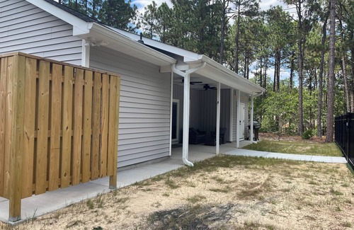 This is a new guest house on a wooded lot. It is centrally located in North Carolina. It is an hour and fifteen minutes from RDU airport and 1 hour and forty-five minutes from Charlotte Douglas airport. We are located less than 5 miles from the Village of Pinehurst, Downtown Southern Pines, and Aberdeen. It is also located 1/4 mile from the blue parking lot for the Men's US Open. This is a spacious 2 bedroom 1 1/2 bath house. It has a King bed, Queen bed and has a pull-out Queen sofa bed in the living room which allows for 6 to sleep comfortable. The house has a full kitchen with all necessary cookware and setting for 12. It also has complete RV 50, 30, and 20 Amp power with water and sewer hookup and a pool with an outside shower.