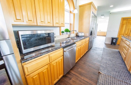 - Large gas stove with 6-burners and large oven, microwave, dishwasher, king size refrigerator and freezer with ice maker
