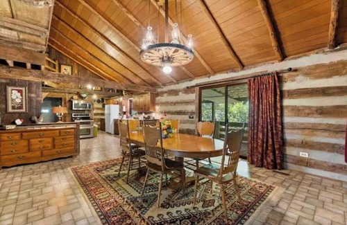 Forget your worries in this spacious and serene space! You will be staying in a log cabin that was built in the early 1970s. The Hardings (Harding Rd) owned a farm in Allen County, Kentucky on which were three log buildings. They dismantled these hand hewed log structures (originally constructed in the late 1700s) and brought them to this farm in Franklin. They designed the main house and Amish builders (again from Allen County) constructed the house.