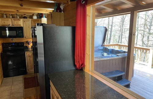 Step outside to enjoy the 6-person hot tub on the upper deck, overlooking a private, wooded hillside. A 4-burner Blackstone griddle and outdoor fire ring make it easy to enjoy meals and evenings outdoors.