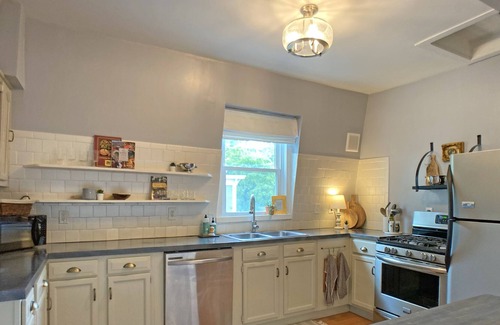 This charming historic 2-bedroom apartment is located on the second floor of a traditional New England 2-family home. It comfortably sleeps 4, with one king bedroom and one queen bedroom, and has many amenities, including a fully stocked kitchen, office with a desk, parking for 2 cars, Netflix, great wifi, and more. Walk to nearby Hope Street for shops and restaurants or visit the Farmer's Market in the Summer. We are about 1 mile (and a nice walk) from Brown University, College Hill, and Thayer Street. Contact us for monthly pricing discount.