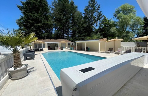 Just minutes from the legendary Le Mans circuit, this spacious countryside retreat offers the perfect blend of comfort, privacy, and convenience for families or groups. Set in a peaceful residential area, the home features a bright and welcoming living space, ideal for gathering, dining, or relaxing after a day of exploring Sarthe. Inside, you'll find a fully equipped kitchen, a cozy lounge, and four beautifully appointed bedrooms, including a master suite. The main house also includes a bathroom with a bathtub and a separate shower room. For added flexibility and privacy, an independent studio with its own kitchenette, bathroom, and sofa bed is located just steps away—perfect for guests or extended family. Outdoors, enjoy a large private pool, a landscaped terrace with garden furniture and barbecue, and a spacious courtyard with parking for up to eight vehicles. With concierge services available 24/7—ranging from breakfast delivery and private chefs to grocery shopping and equipment rentals—every detail is taken care of. Whether you're here for the 24H circuit, a family gathering, or a relaxing escape, this home offers a warm and well-appointed base for an unforgettable stay.