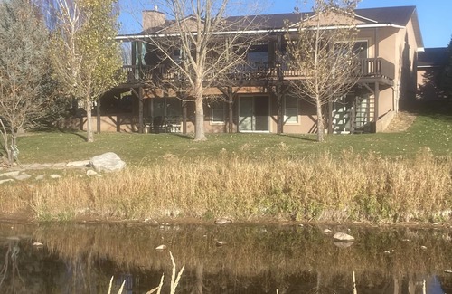 Spacious river front house with covered deck overlooking the back yard, river and town; biking distance to town , hot springs and Wyoming Dinosaur Museum. Float or fish the river. Soak and play in the hot springs, hike, run and explore nearby trails or visit Legend Rock, Hot Springs State Park and Boysen Reservoir. +- 80 miles to Cody, WY, +/-135 to Yellowstone National Park.