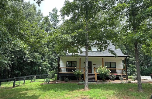 Our home away from home. Cedar View is a countryside retreat boasting 3 bedroom, 2.5 bath, 2 story home with spectacular views from every window. 2 king beds and 2 queens, welcome you for a cozy nights rest. The bathrooms offer 1 shower and 1 shower/tub. Front and back porches provide seating for relaxing, enjoying the fresh air and listening to the sounds of nature. The roof-covered hot tub is accessible year round. We require you to review and agree to the waiver. The fire pit area provides bench seating, and for a good nap, there are 2 hammocks hanging in the trees. The bridge over the ravine was built to give you the feeling of being one with the trees. Go there to watch the beautiful sunsets. We ask that you do not exit the bridge towards the electrical easement. Our friends and family describe Cedar View as “peaceful”. It truly bring us joy to share it with you for your stay. Welcome to our home.