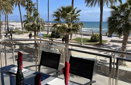 Beautiful and very spacious 3 bedroom/3 bathroom apartment with an unbeatable location - on the seafront of Sitges. 2 minutes walk to bars and restaurants and across from the Ribera beach. All marble bathrooms, with a large seafront terrace with a table and chairs to seat 6 and two additional patios in the back.