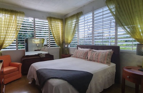A large living area & balcony contribute to an airy feel. A cool Red Stripe with a view towards the harbour and Caribbean Sea is a great way to end the day. Guests also enjoy the balcony for yoga in the morning! The location means shopping, entertainment and of New Kingston and Liguanea are very nearby, while offering an elevated, tree-filled escape with the convenience of WiFi, air con, a water tank, solar water heater & parking for 2-3 vehicles. Hillside is your Kingston home, on a hill, with a view. Fully alarmed with King Alarm response team on hand to attend if needed.