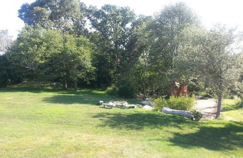 Ideal location at short ride (1.5 mile) to beautiful Horseneck beach and 3 miles from Central Village. Set on 2 acres of woodlands and lawn. Large deck for outside grilling and dining, outdoor shower, fire pit for smores and large swing set. Spacious and tastefully renovated 3300 sq. ft. contemporary cape. Bright, open layout kitchen and living area with hardwood floors and cathedral ceilings. Family friendly private neighborhood and ample off street parking. Fully furnished and equipped and includes all appliances. Four large bedrooms (2 king, 2 queen and 1 Full) and 3 full bathrooms. Walk in ground floor finished basement with French doors and separate entrance (800 square ft) with double and twin beds. Easy highway access to 88 and close to area amenities. High speed internet.