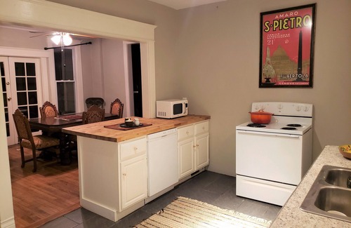 This home is perfect for guests who are seeking an authentic historic home experience. In the home's renovation we have preserved as many original features as possible. These historic features (such as original woodwork, windows, sinks and toilets, kitchen cabinetry) show their age and beauty in the form of patina. Our design approach is to be sensitive to the homes past and embrace its authentic historic features. We do not rip everything out and create a modern day home inside. Yet we have many modern amenities in the home, such as Central Air Conditioning, WIFI and Roku TV.