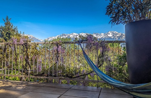 Architect-designed house 225m2, 8-10 people heated, secure, fully enclosed swimming pool. 5 bedrooms. 2 bathrooms, games room 40m2, living room with breathtaking view of Belledonne chartreuse and Vercors, children's games, cabin, swing, comic book, baby equipment, ping-pong table. Ideal large family or 2 families. Close to St Hilaire du Touvet paragliding sites (landing zone 500m), canyoning, caving, hiking, mountain biking. the whole family will love it. Shops within walking