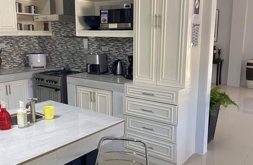 Open-concept, spacious, fully airconditioned with emergency generator for the entire house/villa with large fully equipped kitchen and a center island. Huge outdoor terrace, and a foyer furnished with cozy sitting area. . Spacious rooms. Indoor garage & outdoor parking available. Only 10-12 min drive to Hundred Islands Wharf & 2-5 mins drive to Grocery stores, fast food chain, and the new 24/7 Jollibee to enjoy the beautiful Alaminos city. Ideal for families and group of friends to explore.