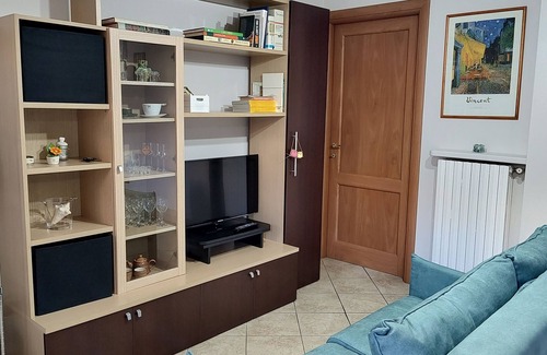 Spazioso Bilocale con Ampio Terrazzo, in Zona Tranquilla Vicino al Centro is located in Roreto. Spazioso Bilocale con Ampio Terrazzo, in Zona Tranquilla Vicino al Centro provides accommodation, featuring Bedding/Linens, Wellness Facilities, Fireplace/Heating, among other amenities. This Apartment features Bedding/Linens, Wellness Facilities, Fireplace/Heating, to make your stay a comfortable one.
