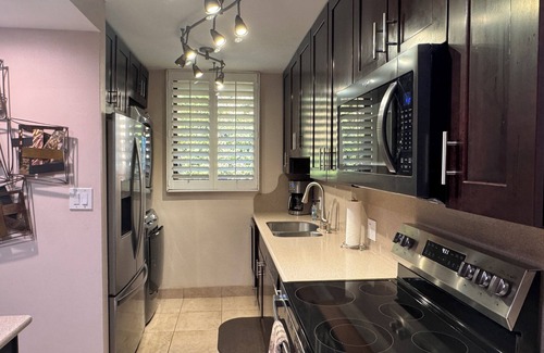 Enjoy the updated, full size kitchen. It is complete with all appliances, including a microwave, dishwasher, full size washer and dryer, all cookware and all the utensils needed to cook a wonderful meal. It is only a ten-minute drive to a large grocery store in nearby Kihei or Wailuku. If you want to dine out, there are several excellent restaurants with both ocean and harbor views that are located within a few minutes walk, just down the street.