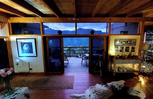 This unique "cabin in the woods" tree house style home is nestled high up on a property making up part of the Table Mountain Reserve, overlooking the world heritage site "Orange Kloof" effectively the back of the Table Mountain reserve and is a one-of-a-kind accommodation.