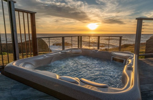 Puffin's Perch offers the perfect recipe for a memorable getaway with a spectacular oceanfront setting mere feet from the bluff's edge, showcased by whitewater cove views. This dreamy cottage features a wall of glass that faces the sea for breathtaking sights along with a healthy dose of quality furnishings including a private hot tub to relax your muscles in after days of adventuring. Garnish with abundant wildlife like a resident mule deer family, gulls, geese, sea lions, and whales, and top it off with a bright interior brimming with natural light, a fully outfitted kitchen, a cozy fireplace to curl up to, and a 50" TV with premium cable, and you've got yourself a dream, cliffside ocean vacation.
