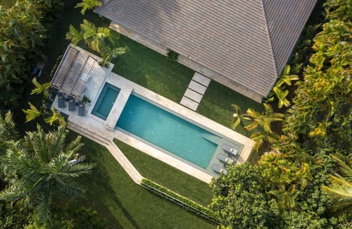 Treat yourself to a moment of relaxation in this spectacular new 7'500 ft sq private villa just two minutes from Minitas Beach. In the quiet neighborhood of Los Lagos, this property, sheltered by its splendid tropical garden, is a true oasis in the heart of Casa de Campo. Its 5 very comfortable bedrooms and large living areas promise a peaceful vacation. From any window, you can enjoy the view of the garden, with its 23-meter-long pool, its jacuzzi and gazebo as centerpieces, the perfect place to cool off under the Caribbean sun.
