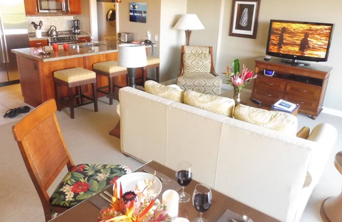 Spectacular OCEAN VIEW from our 5TH FLOOR KONEA extra large one bedroom one bath home #544 on the much preferred quiet and shady north side of the KONEA tower. Wake each morning to stunning ocean views from your king-size bed and spacious lanai. Floor to ceiling 'nana' door wall runs the entire width of the living area bringing the outside in along with tropical breezes for a true Hawaiian experience. Owners have many years of Hotel, Restaurant and Wedding experience.