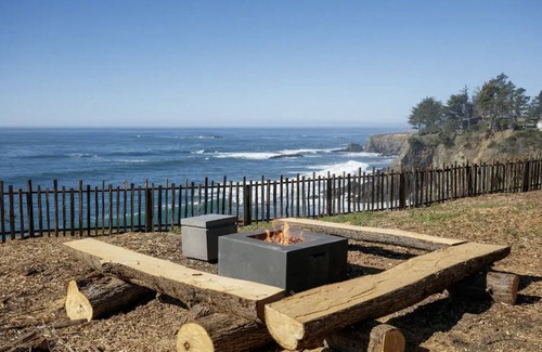 Step onto the expansive deck and take in uninterrupted views of the Pacific Ocean, where whales glide by and stunning sunsets paint the sky. Our fenced-in yard boasts a spa, oceanfront firepit, and picnic table, providing the perfect setting for relaxation and outdoor enjoyment.