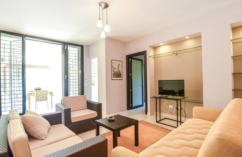 Welcome to this comfortable apartment, whose idyllic location offers you the ideal setting for a wonderful vacation with beach fun and exciting excursions on the island. The bright rooms are tastefully furnished with friendly colors and marble elements and offer everything you need for a pleasant stay. After an eventful day, you can look forward to cozy evenings on the comfortable sofas.