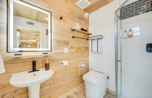Nestled just outside of town and enveloped by the vistas of the Texas Hill Country, this 1-bath studio offers a quaint, small-town escape ideal for relaxation and outdoor adventure. Sip your coffee on the patio, seamlessly stream shows on the Smart TV, or visit Lake Travis for some fun on the water. Plus, this vacation rental is fully powered by solar energy and refreshed with pure rainwater systems!