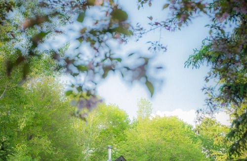 The Loft is set amongst a circle of trees next to the entrance to the Blueberry Trail. It receives some welcome southern sunshine in the winter through the big living room/dining room windows.