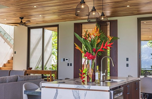 Situated on the first ridge with an unobstructed view of the Pacific Ocean, wildlife surrounds you. This unique experience is a result of a community effort to protect the wildlife corridors within the development. The landscape surrounding the villa was designed with vibrant color as to attract hummingbirds and butterflies. Blue Morpho butterflies are frequently encountered in the early morning. Gentle breezes continually caress the property as suggested in the villa name.