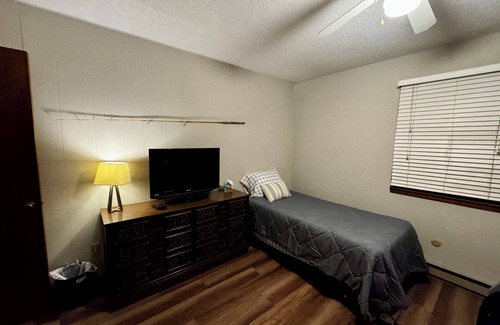 This Ortonville house boasts 3 inviting bedrooms with a mix of twin, bunk, and full beds. With amenities like heating, AC, WiFi, and a washing machine, your stay will be comfortable and convenient. We think our place will help you experience everything Ortonville has to offer. Beautiful view and large backyard in a very quiet area make this home a great place to stay while visiting Ortonville/Big Stone Lake. The home gets it's name from the visiting groups of turkeys we often see in the backyard. This home offers 3 bedrooms and 1 bathroom and can comfortably accommodate 7 guests. There is off the street parking, outdoor outlets, and a fish and game cleaning area in the garage (We ask that you take your fish/game scraps with you for disposal).