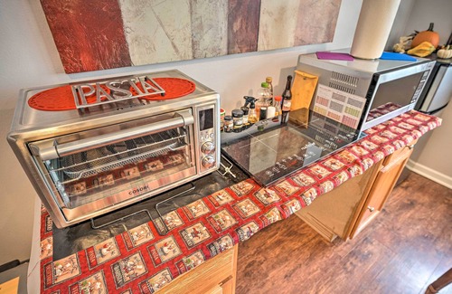 KITCHENETTE: Microwave, mini fridge w/ freezer, toaster, combo air fryer, convection oven, basic spices, Keurig coffee maker, electric kettle, dishware & flatware, kids' dishware & flatware, wine glasses, Instant Pot, 2-burner induction stove, blender, cooking basics, water filter, freezer chest