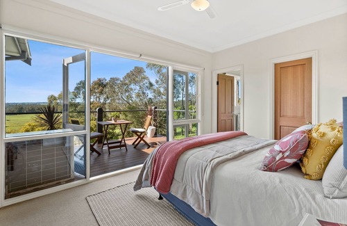 Located between Daylesford, Kyneton, Trentham and Woodend, with incredible 180 degree views of the surrounding countryside, and only 60 minutes from Melbourne, this rural property is made for relaxing and rejuvenating. The house is perfect for large groups, and it offers 5 large sized bedrooms and 2 bathrooms, a variety of spacious open plan entertaining and dining areas, a wood burning fireplace ,reverse cycle split system air conditioning and fitted with double glazed windows throughout for year round comfort.
