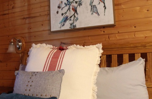 Beautiful 2 bedroom, 2 bath unit with a full kitchen, futon accommodating 6 people. Fireplace inside, fire pit outside with patio table and chairs. This luxury cabin is located near the pool. This unit is perfect for pets with spacious grass yard area for your little dog. This unit comes equipped with full kitchen and full-size appliances, plates, utensils, etc. The unit provides linens for 2 queen and 1 futon, as well as towels in the bathrooms.