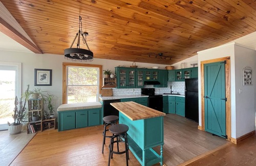 Two private spaces in one: a beautiful main house & charming guesthouse. Enjoy stunning bay views, birdwatching from cozy window seats, sightings of eagles & foxes. Outdoors relax by the fire pit, BBQ, deck, or unwind in the screened gazebo. Kayaks & paddleboard are included for bay adventures. Minutes from the national park’s white sandy beaches, close to town with many dining options. This retreat blends nature, comfort & location. Great for groups who want some separate space while together.