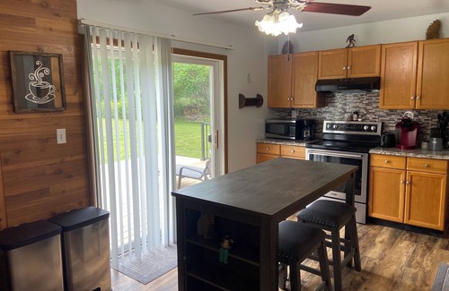 • Cabin's entrance, deck, living room, kitchen, queen bedroom, and bathroom are wheelchair assessable. Guests would need to bring their own shower and commode chairs