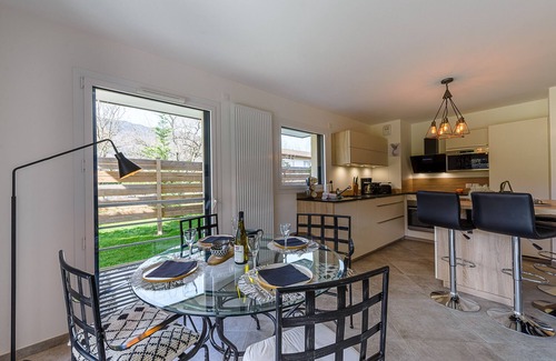 Saint Jore Park // LLA Selections by Location Lake AnnecyBeautiful apartment located in the centre of Saint-Jorioz. Accommodation in a new and quiet residence in the heart of the village.You will enjoy its very beautiful south-facing exposure with its 300m2 garden fully enclosed, ideal for children and family trips.Just a few metres away, you will find numerous local shops: the supermarket (Super U), the newsagent, a bakery, a butcher's shop, a florist, banks, etc... all within walking distance!!You will have a garage for a car in the basement as well as access to the bicycle room. Everything is designed to allow you to forget the car for the duration of your stay and explore our lake and beautiful mountains.Detailed description of Saint Jore Park:- Entrance with a large storage cupboard and spacious toilet with hand basin- A modern living area with a central island, a dining table for 4 people, a cocooning lounge with sofa, armchairs, television and local decorations- A fully equipped open kitchen with oven, microwave, Nespresso and filter coffee machines, dishwasher, toaster, storage...- A bathroom with bathtub and washing machine (ECO mode)- Bedroom No. 1: small workspace, bunk beds OR small double sofa bed, storage cupboard- Bedroom No. 2: 1 double bed 140x190 with chest of drawers and storage- Plancha, small electric barbecue, raclette appliance- A large garden of 300m2 fully enclosed with sun loungers and a table for 4 people to eat outside.Sunshine is present throughout the day, a parasol will be at your disposalNB: Barbecues other than electric ones are prohibited in the residence. Pros: - Large garden of 300m2- Internet connection- New residence and very pleasant neighbourhood- Proximity, location in the city centre- Easy travel- Local art and decorationYour agency LLA Selections by locationlacannecy, specialist in seasonal rentals by Lake Annecy and in the Alps, has selected the Parc Saint JoreA deposit of €800 will be made via a bank pre-authorization. A link will be sent by email from the server of our service provider SWIKLY to secure the deposit without impacting the bank limit. Nothing will be debited as long as everything is in order at check-out.The beds will be made upon your arrival according to the number of registered participants; towels (2/person), kitchen towels (2), bath mats, and welcome products (soaps, shampoo, shower gel, dishwashing liquid, a few washing tablets, sponge, 2 toilet paper rolls/WC...) are included in the service as well as the end-of-stay cleaning.We can provide you free of charge with a baby bed type travel cot and a high chair upon request.Your LLA Selections agency has a private concierge service dedicated to helping you organize your stay. You will find all available services in the "Sophie's Services" section of our website. You can book online directly your transfers, private lessons, private chef, catering, massages... A link will also be sent to you as soon as your reservation has been confirmed.LLA Selections is committed to you! This holiday rental has adopted additional measures in favour of sustainable development and has obtained the Sustonica label for environmental sustainability.Because your health and comfort remain our priority, we have adapted to the new hygiene standards recommended by health services. Our cleaning and housekeeping procedures have been completely rethought to meet our customers' expectations and recommendations.Rest assured that our priority remains the success of your holidays. Our entire team will therefore do everything necessary to make your stay pleasant and memorable!Our motto: Enjoy, we'll take care of the rest!About Saint-Jorioz:Located on the shores of Lake Annecy, Saint-Jorioz is a charming village ideal for holidays combining relaxation, adventure, and discovery. Surrounded by majestic mountains, it offers a range of varied activities that we can organize with our trusted local partners. Culture enthusiasts will appreciate its historical heritage, typical markets, and Savoyard gastronomy. With comfortable accommodations and easy access from Annecy, Saint-Jorioz guarantees a memorable stay in an exceptional natural setting.Nearby, here are the activities not to be missed!:In summer:- Cycling (the cycle path accessible from the apartment)- Hiking: Mont Veyrier, La Tournette or Angon Waterfall- Sailing, pedalo, kayak, canoe, stand-up paddle, water skiing (we will be delighted to put you in touch with our partner in Annecy)- Paragliding: you will have the opportunity to see them take off in Montmin or land on the nearby Talloires base: guaranteed daily show!- Medium mountain walks from Montmin (20 mins), Mont Veyrier (20 mins), Parmelan or La Clusaz (40 mins)- Summer sledging from La Clusaz resort- An adventure park in Talloires (20 mins) or Tamié (50 mins)In Winter:- Cross-country skiing, downhill skiing or sledding from the nearby family resort of Montmin,- Can also be practiced in La Clusaz or Le Grand Bornand (40 mins); Les Saisies (50 mins), the 3 Valleys (approximately 1 1/4 hours)- Snowshoe walks from the Forclaz pass- Dog sledding- SnowmobilingHave a good stay!