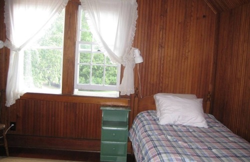 The "Meadow" cottage, directly adjacent to our "Court" cottage, is absolutely charming with four bedrooms, two baths, a large kitchen/dining/living area and a spacious deck. The cottage is a five-minute walk to our small, maintained beach area and a short distance to our tennis court, playground area and pick-your-own garden. The bed and bath configuration for the cottage is as follows: Sleeps 7 with four bedrooms; 4 Twin Beds (Downstairs); 3 Twin Beds (Upstairs); 1 Bath (Upstairs);1 Bath (Downstairs). This cottage rents on a weekly basis (Sat-Sat), during the months of July and August.