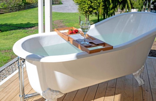 Unwind under star filled evening skies in the outdoor clawfoot bathtub, perfectly positioned on the deck to capture the best views.