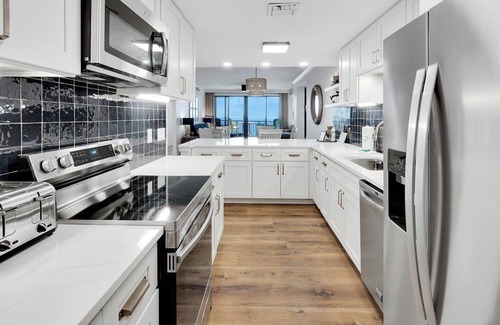 Perched on the 12th floor and set away from the busier areas of the beach, this spacious unit offers panoramic views, two private balconies, and tile flooring throughout. Each bedroom features a king bed, and with a sleeper sofa in the living room, the condo comfortably accommodates up to 8 guests.