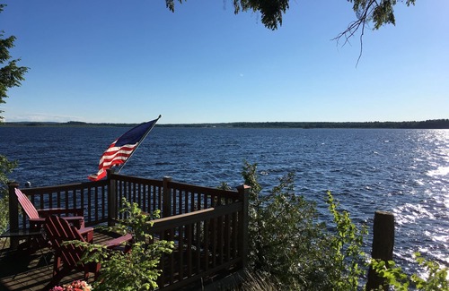 Located at the waters edge, our camp was built in 2004 and features an open floor plan with 180 degrees of lake views from our deck on the point. Two decks and a porch offer plenty of outdoor seating in the sun or in the shade - where you will enjoy spectacular sunsets, the call of the loons, and gorgeous night skies.